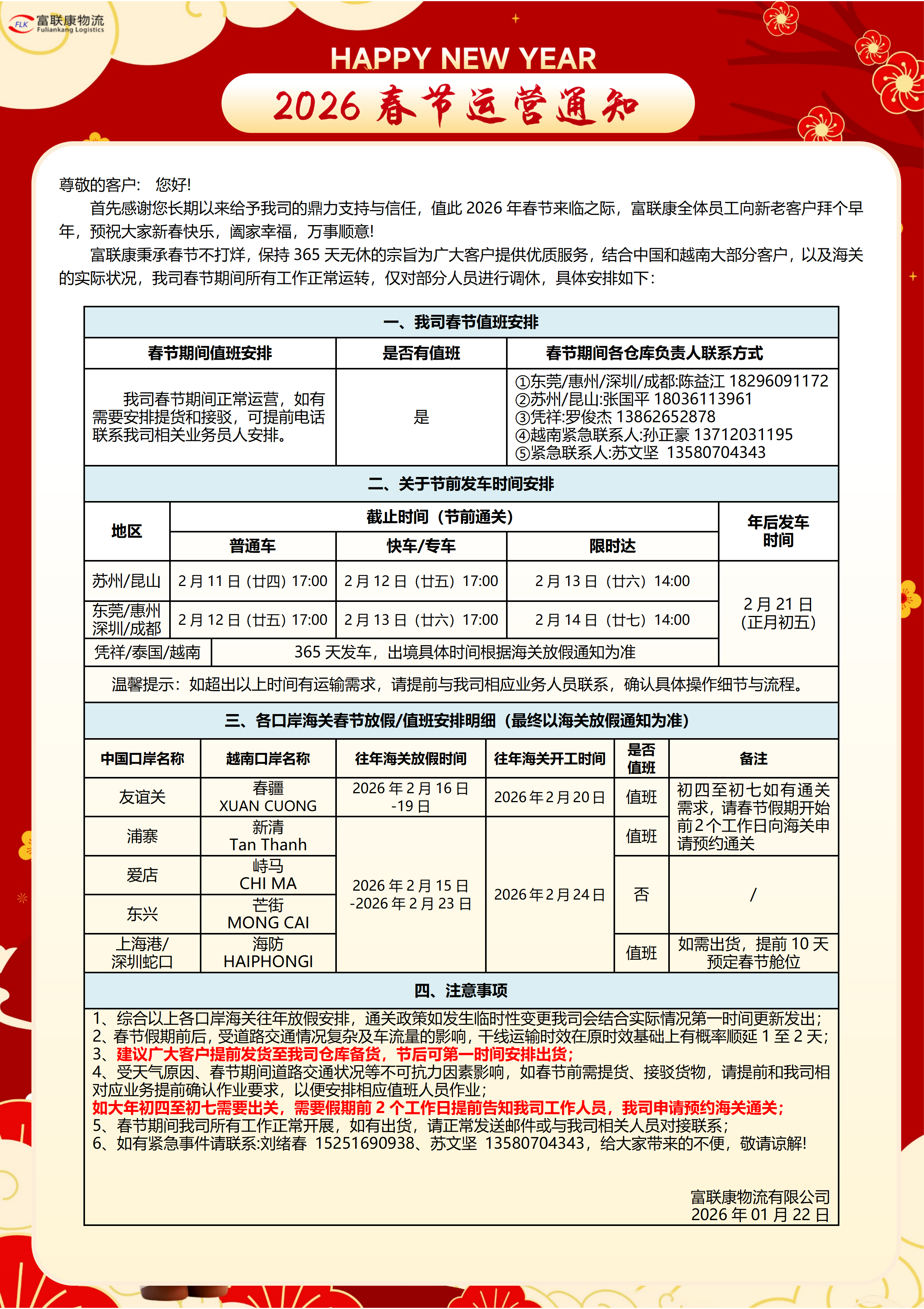 富联康跨境物流自 2015 年成立以来,一直以“高效率、高质量、优质服务”的标准来指导自身的工作,有信心将富联康打造成东南亚B2B陆运跨境物流运输引领者。富联康物流现有员工600+,自有及合作车辆 1500+,合作客户 4500+,仓储面积60000M²。同时为100+上市企业及龙头企业服务,集整车运输、仓储、报关、境外派送为一体。坚持“一切以客户需求为服务目标”的理念,为广大客户提供安全、高效、专业的精准跨境物流服务。