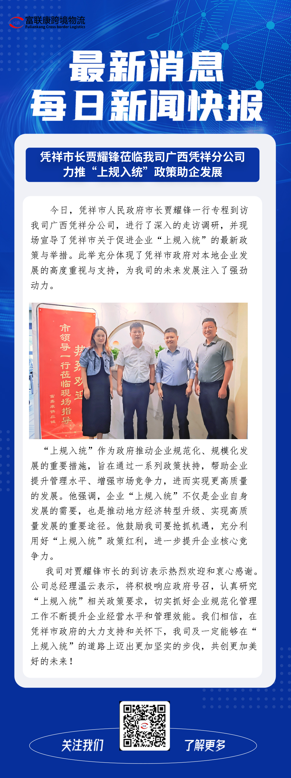 凭祥市领导组莅临我司广西凭祥分公司,力推“上规入统”政策,助企发展