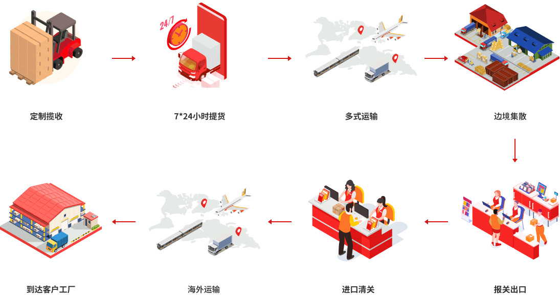 富联康提供多种多式联运方案:陆运+空运;陆运+海运;陆运+铁路运输;陆运+铁路运输+空运等,满足客户定制化需求。