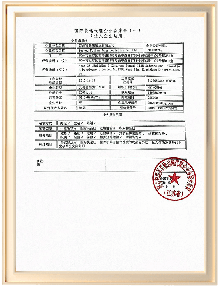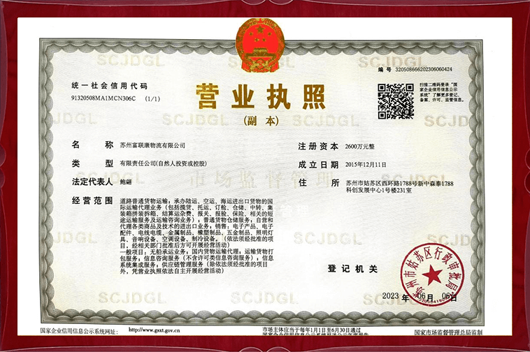 Được thành lập vào tháng 12 năm 2015, Fuliankang Crossroad Logistics tuân thủ triết lý "hiệu quả cao, chất lượng cao và dịch vụ chất lượng cao", cam kết trở thành doanh nghiệp hàng đầu trong vận tải logistics xuyên biên giới ở Đông Nam Á. Công ty có hơn 600 nhân viên, hơn 2000 xe riêng và đối tác, hơn 4500 khách hàng, cung cấp dịch vụ vận chuyển toàn bộ xe, lưu trữ hợp nhất, vận tải Đông Nam Á. Công ty chúng tôi thực hiện hệ thống quản lý ISO9001, ISO14001, ISO45001, sử dụng hệ thống giám sát 24 giờ để nhận ra quản lý vận chuyển, tương tác thông tin khách hàng, theo dõi trực tuyến và định vị GPS, đảm bảo đặt hàng trực tuyến 24/7 và cập nhật dữ liệu kinh doanh theo thời gian thực. Fuliankang sẽ tiếp tục cung cấp dịch vụ logistics xuyên biên giới nhanh chóng, an toàn và đúng giờ cho khách hàng với các dịch vụ chất lượng và hoạt động hiệu quả.